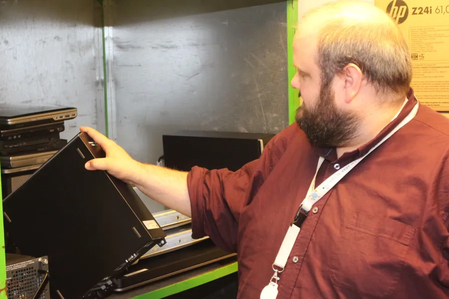 - Når desse skapa er fulle blir dei sendt til eit mottak hjå Atea, kor dei går gjennom utstyret og køyrar sikkerheitssletting av diskane. Det utstyret som har verdi får vi tilbake i pant. Det kan vere at minnebrikkene til dømes er brukande. Då får vi kanskje ein hundrelapp for kvar minnebrikke, fortel Tord.